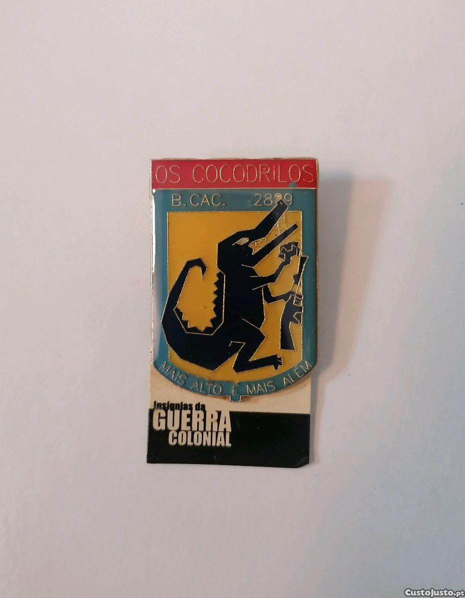 Pin da insígnia militar da unidade "OS COCODRILOS" do Batalhão de Caçadores (B. Cac.) 2889 que estiveram presentes na Guerra Colonial Portuguesa e cujo lema é "MAIS ALTO E MAIS ALEM" que está presente na insígnia.