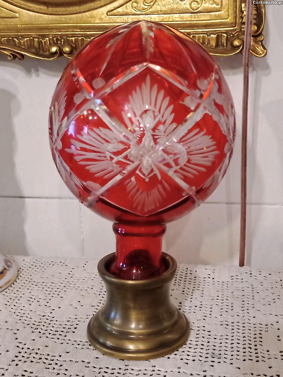 Pinha em vidro lapidado. Tem uma ligeira inclinação.