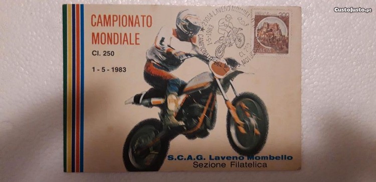 Postal 1983 Campeonato Mundial Motocrosse com selo e carimbo do dia, nas costas assinado pelos pilotos da altura, entrego em mão, envio pelo correio.