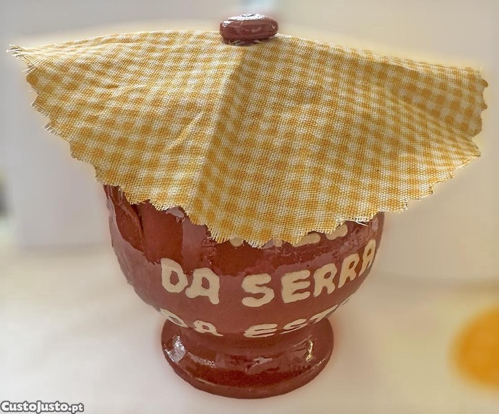 Este pote em barro vidrado. Possui uma tampa igualmente em barro, duas pequenas asas laterais e uma cobertura de tampa em tecido. Na frente do pote encontram-se as inscrições Mel da Serra da Estrela, uma vez que estes potes são utilizados com essa função, embora este não possua conteúdo.