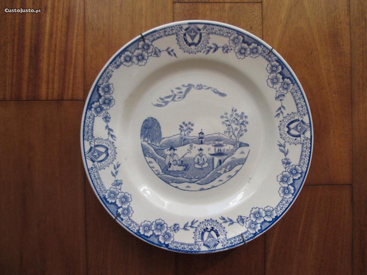 Vendo Prato Antigo da Cesol, Branco com decoração Azul com motivo oriental.