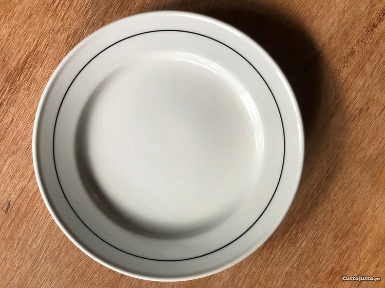 Preço: 5 €Prato de sobremesa Coimbra branco com aro azul-escuro