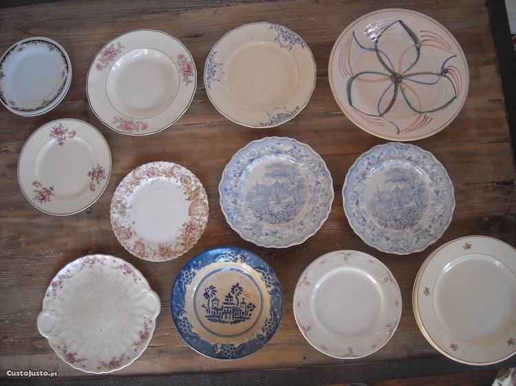 Pratos antigos diversos coleccao Lusitania, Bauscher Alema e outros. Em bom estado, apenas um pouco sujos