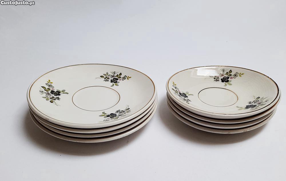 Pratos antigos da Fábrica de Loiça de Sacavém decorados com motivos Florais e rebordo a ouro