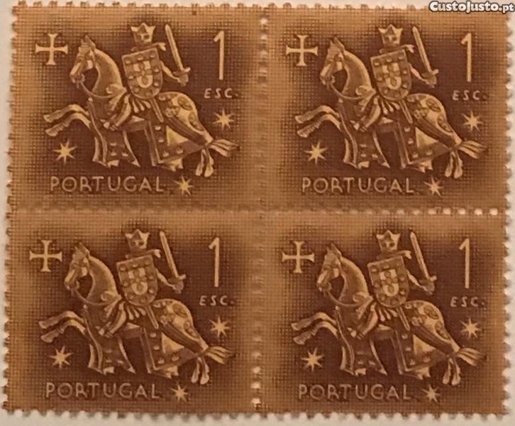 Quadra de selos novos de 1$00 - Rei D. Dinis - 1953