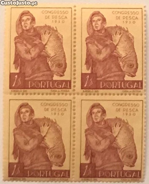 Quadra de selos novos de 1$00 - 3. Congresso Nacional de Pesca - 1951