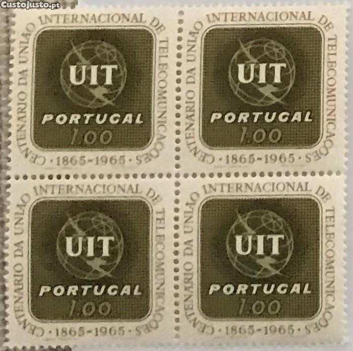 Quadra de selos novos de 1$00 - 1. Centenário da UIT - União Internacional de Telecomunicações - 1965