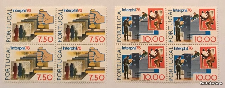 Quadra de selos novos de 10$00 - INTERPHIL - 1976