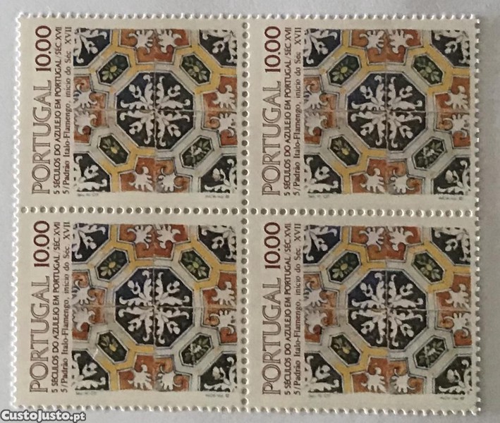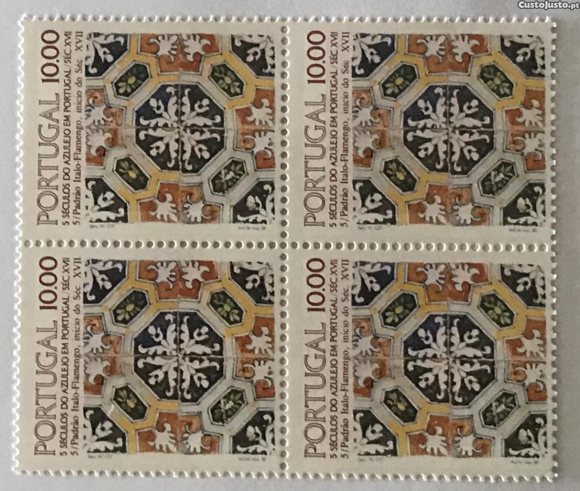 Preço: 3 €Quadra de selos novos de 10$00 - 5 séculos do Azulejo em Portugal - 1982