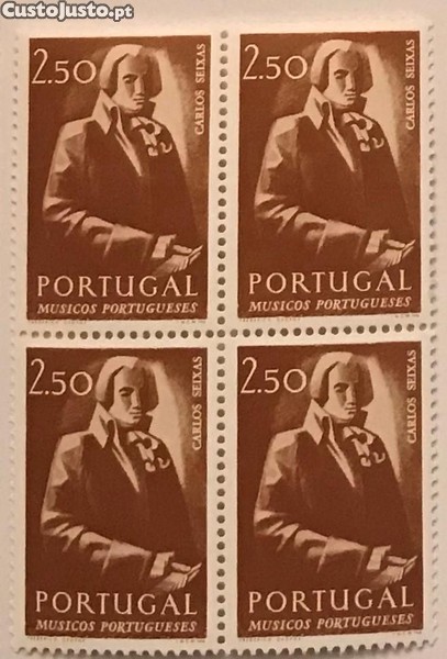 Quadra de selos novos de 2$50 - Músicos Portugueses - 1974
