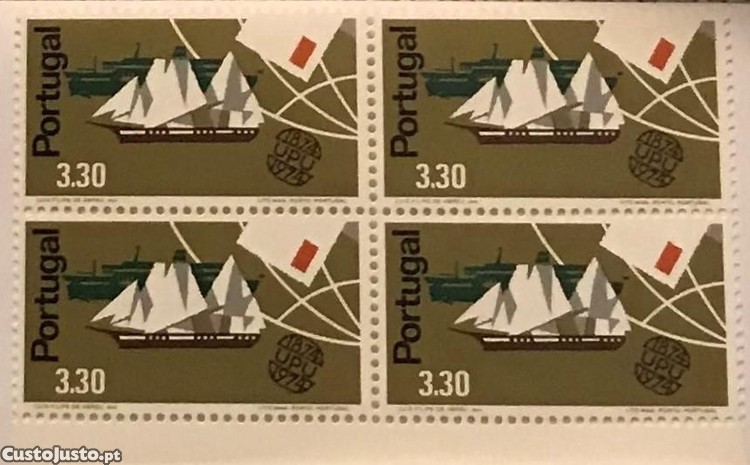 Quadra de selos novos de 3$30 - Centenário da U.P.U. - União Postal Universal - 1974