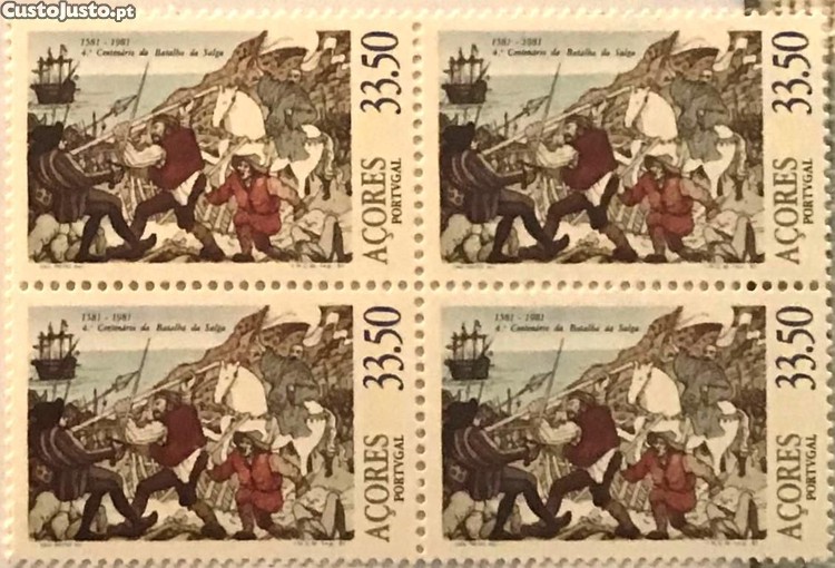 Quadra de selos novos de 33$50 - 400. aniversário da Batalha de Salga - Açores - 1981