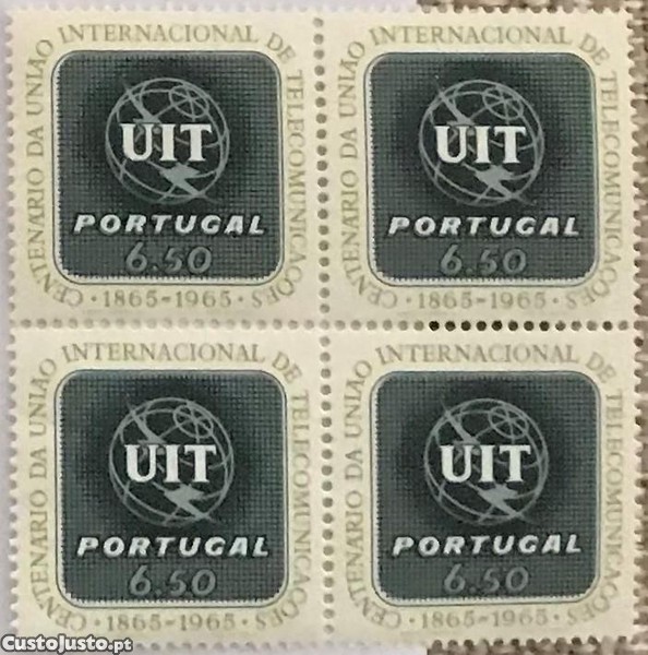 Quadra de selos novos de 6$50 - 1. Centenário da UIT - União Internacional de Telecomunicações - 1965