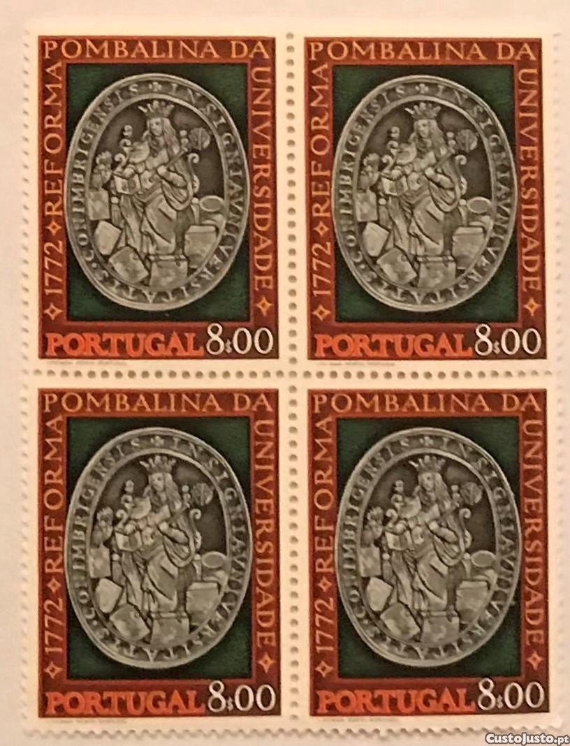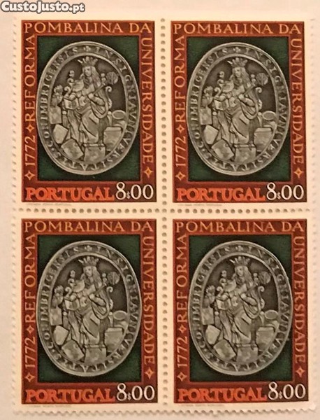 Quadra de selos novos de 8$00 - 2. Centenário da Reforma Pombalina da Universidade - 1972