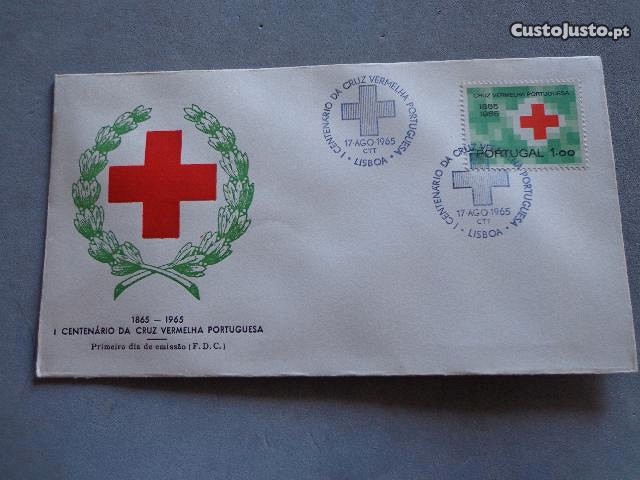 Raro envelope 1 Centenário da Cruz Vermelha Portuguesa 1865-1965 - Primeiro dia de emissão - 1965 - Carimbo Lisboa CTT