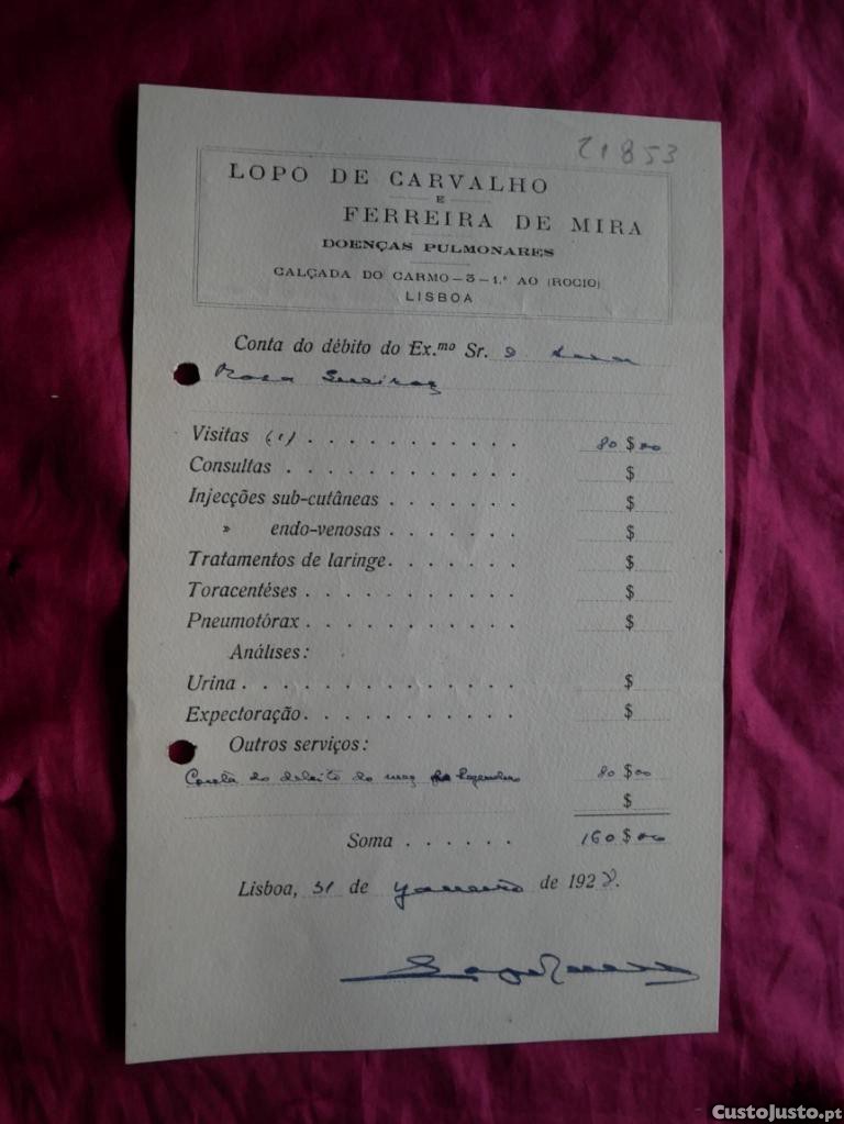 Preço: 3 €Recibo de Doença pulmonar 1928.