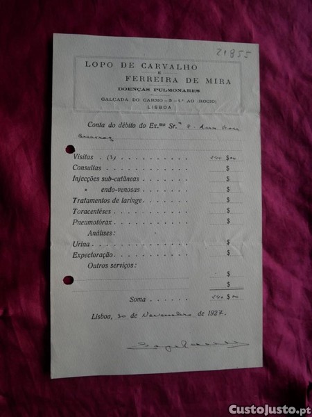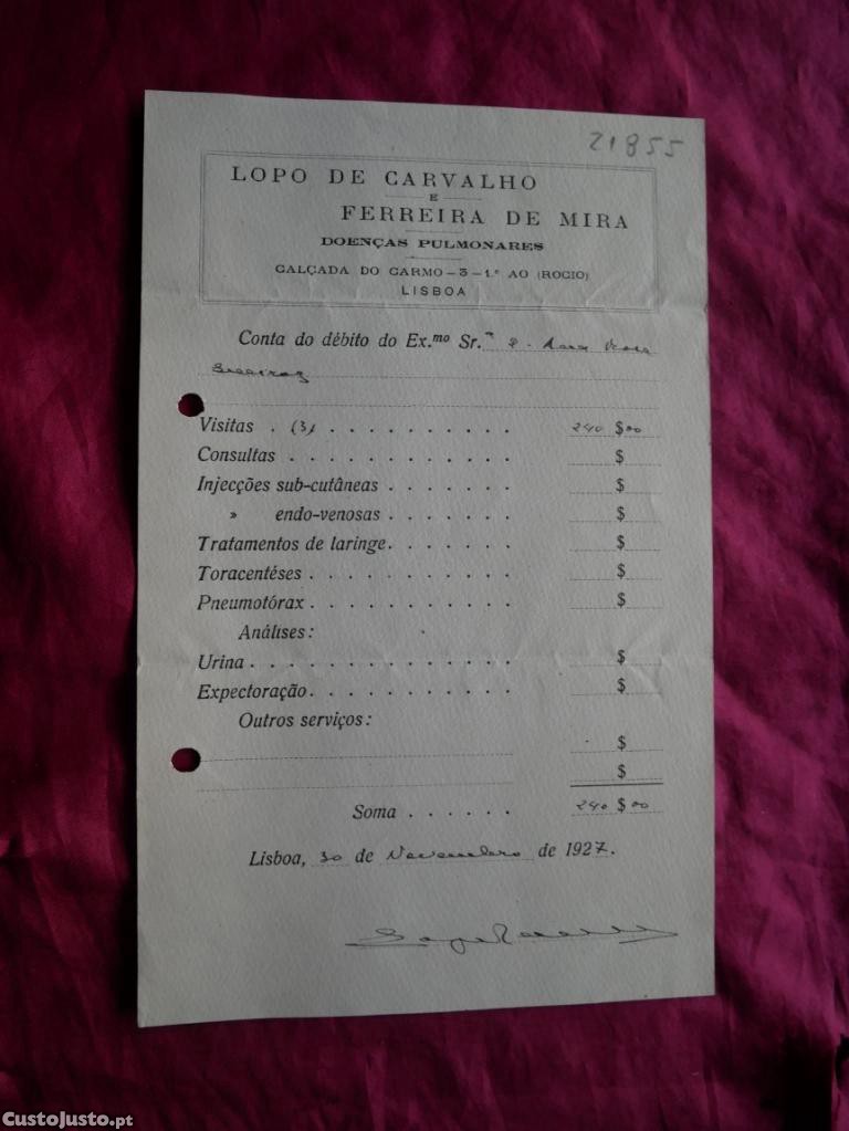 Preço: 3 €Recibo de Doença pulmonar 1928.