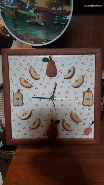 Lindo relógio feito a partir de 4 azulejos com frutos em relevo