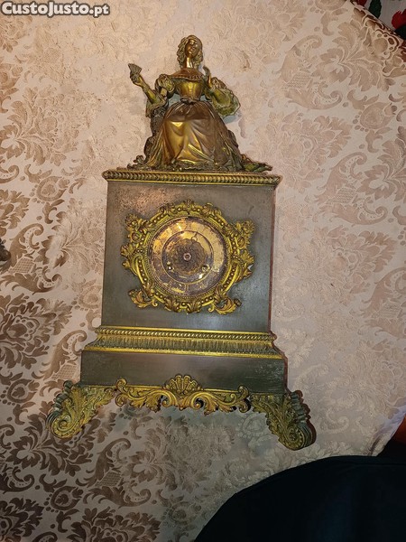 Relógio Um deslumbrante relógio de lareira francês do século XIX, inspirado em Pierre Jaquet Droz que integrou gradualmente módulos automáticos e mecanismos de reprodução de música. Composição romântica de uma jovem dama sentada com um leque e duas pombas. Feito em bronze patinado com detalhes dourados e assente sobre uma base de trabalhada. Este relógio personifica a arte refinada do Império Francês e dos períodos românticos.