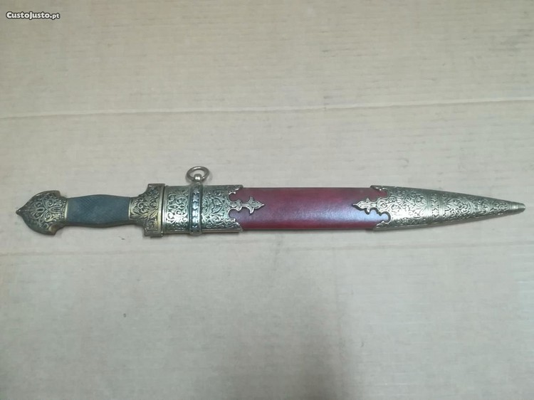 Punho e elementos da baina em metal dotado com decoração relevada de cariz vegetlista.