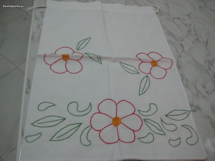 Vendo saco pão, 100% algodão branco, com bordado à mão, NUNCA USADO. Dimensão de: altura 53 cmx largura 36cm.