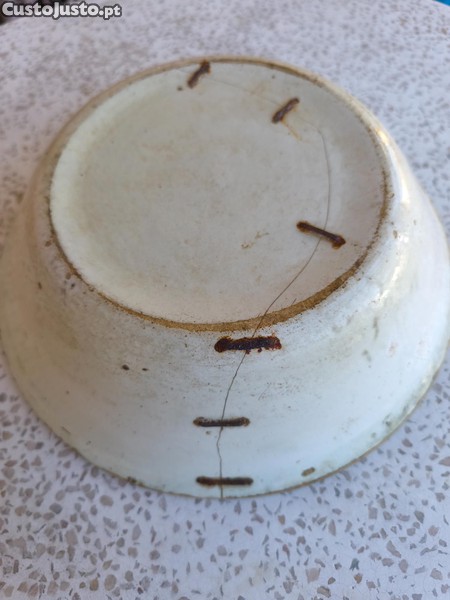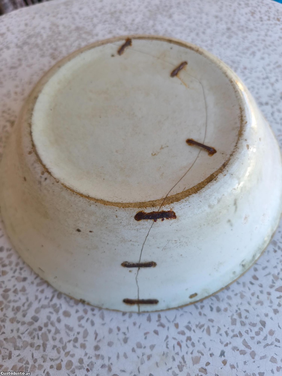 Saladeira/alguidar centenário em faiança portuguesa (recuperação com 'gatos')