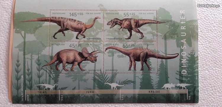 Selos Alemanha novos, de 2008 1Bloco dinossauros, 7 selos, entrego em mão, envio pelo correio.