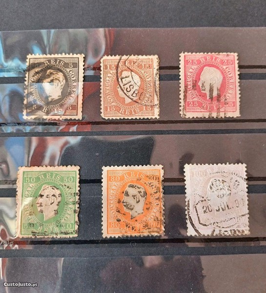 Vendo conjunto de 6 selos da série "D. Luís I. Fita direita", emitidos entre 1870 e 1876.