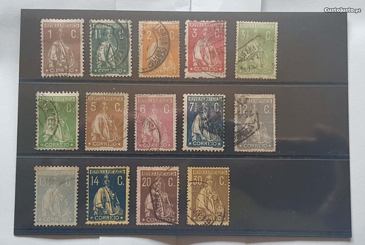 Vendo série completa Ceres novas cores 1917 a 1920 usados, Afinsa 221 a 234. Os selos da foto são os reais que tenho, não uso fotos de catálogos. Preço 50 euros.