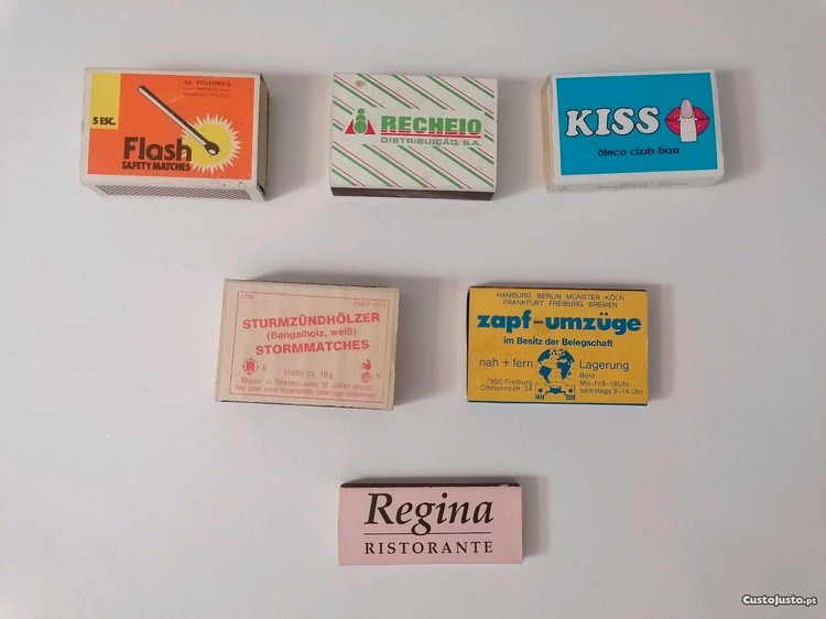 Preço: 15 €Set 6 caixas de fósforos de publicidade a restaurantes, disco club bar, etc, com alguns anos