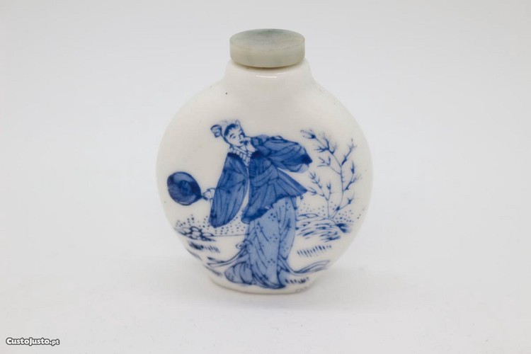 Snuff Bottle em Porcelana Chinesa Cenas de Jogo XX