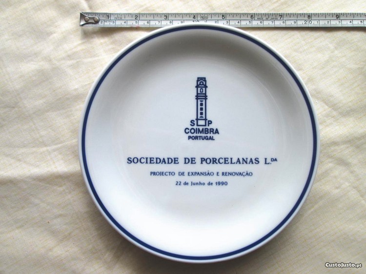 Vendo 1 Prato da Sociedade de Porcelanas, Lda, de Coimbra, Comemorativo do "Projecto de Expansão e Renovação" de 22 de Junho de 1990.