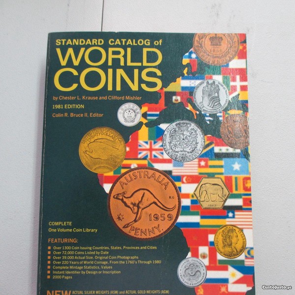 Standard Catalog of World Coins, Edição Krause 1981, dimensões 28x21x4,5 cms, 2000 pags ilustradas