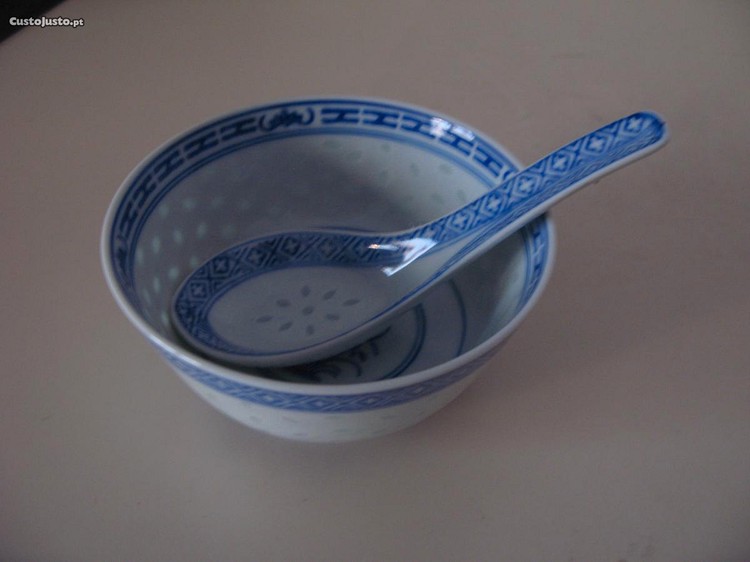 Preço: 3 €Taça procelana oriental 'Bago de arroz' + Colher