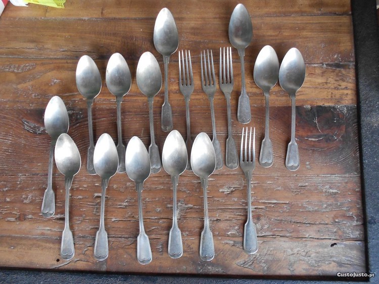 Preço: 40 €Talheres antigos em alpaca - 17 peças