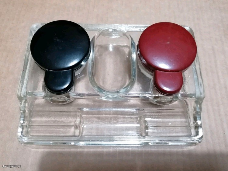 Preço: 25 €Tinteiro duplo em vidro para secretária sendo uma peça já do século passado