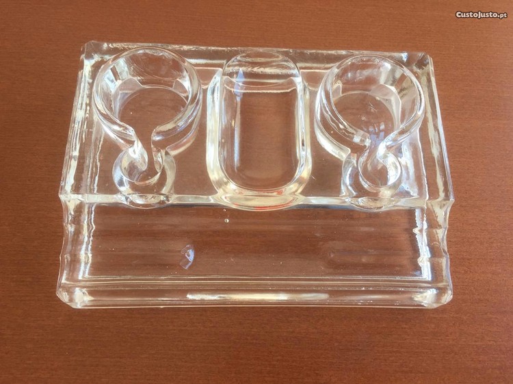 Vendo tinteiro antigo em vidro muito bonito com apoio para canetas de aparo em óptimo estado.