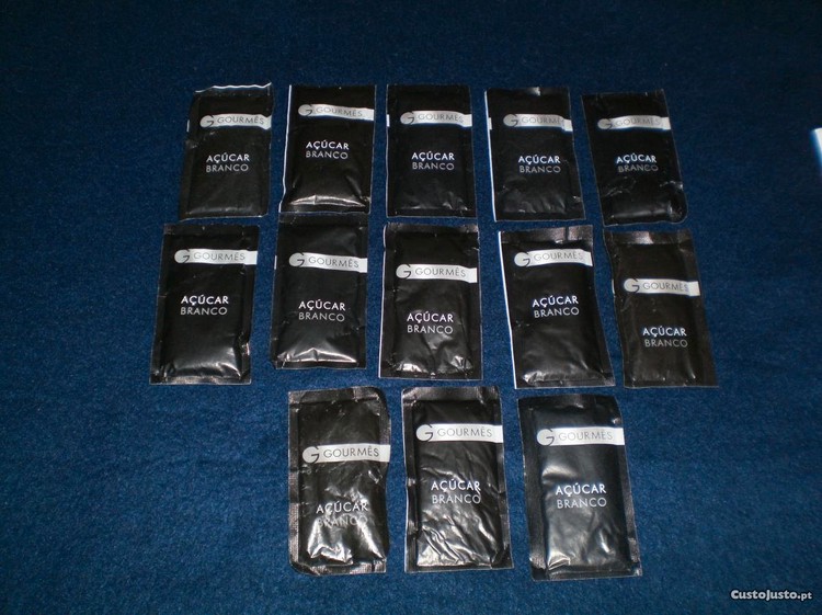 Preço: 3 €Treze pacotes de açúcar cheios GOURMÊS