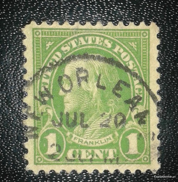 USA Stamp Benjamin Franklin 1706-1790 Year: 1923 Used Colour: Green light No watermark Perforation: 11 Face value: 1 Cent Size: 19 1/4 x 22 3/4 mm For sale