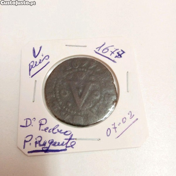 Moeda de V reis ano 1677 D.Pedro P Regente em bom estado de conservação.