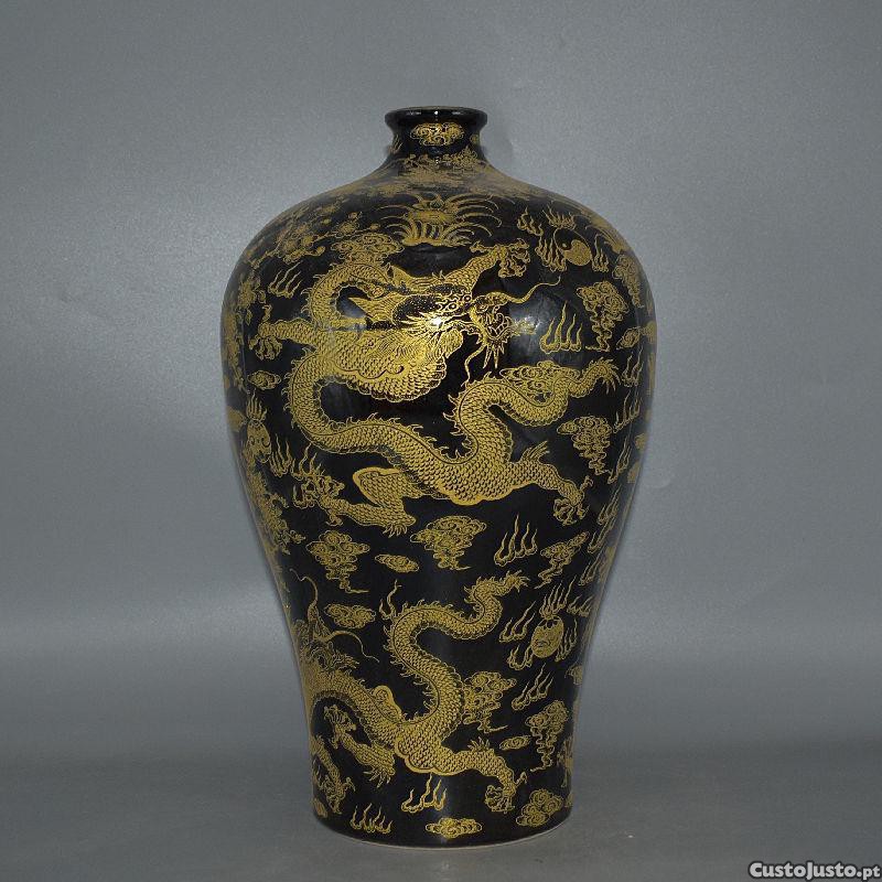 Preço: 16 000 €Vaso de Ameixa Kangxi com Esmalte Dourado Negro e Desenho de Dragão da Dinastia Qing