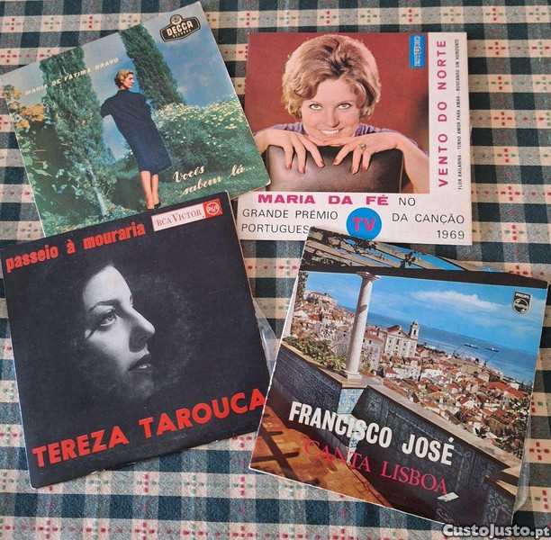 10 vinis eps 45rpm musica portuguesa fados anos 60 de Tony de Matos, Maria da Fé, Helena Tavares,Tereza Tarouca, Francisco José, Maria de Fátima Bravo/Tristão da Silva.Todos os discos em mto bom estado com pouco uso e sem riscos. Preço individual 5. Pagamento dinheiro /transferência. Portes a cargo do comprador. Entrega em mão na zona de cascais e zona areeiro em Lisboa.