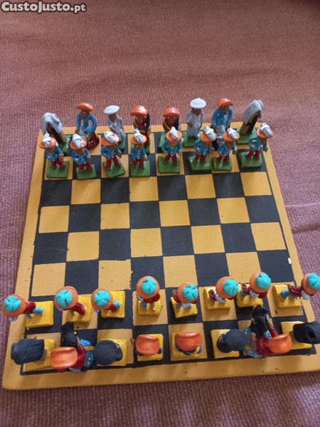 Preço: 40 €Xadrez Antigo com Peças em Argila pintadas à mão.
