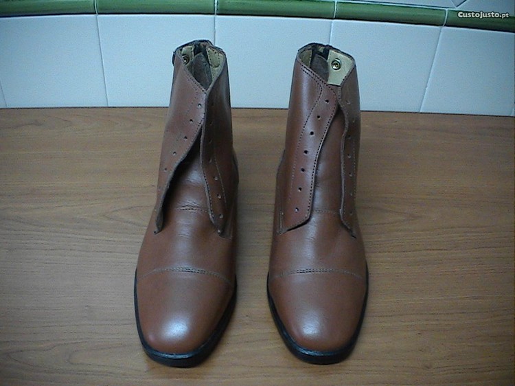Preço: 30 €Botins de equitação, pele cor camel, por estrear