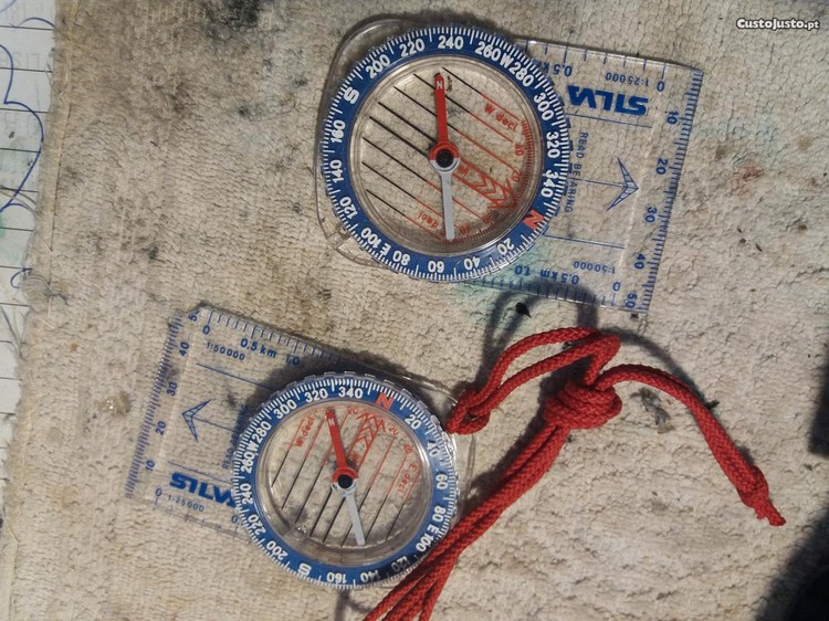 Duas bússolas muito certas com medida cm na base e cabeça rotativa cada três euros.Novas.