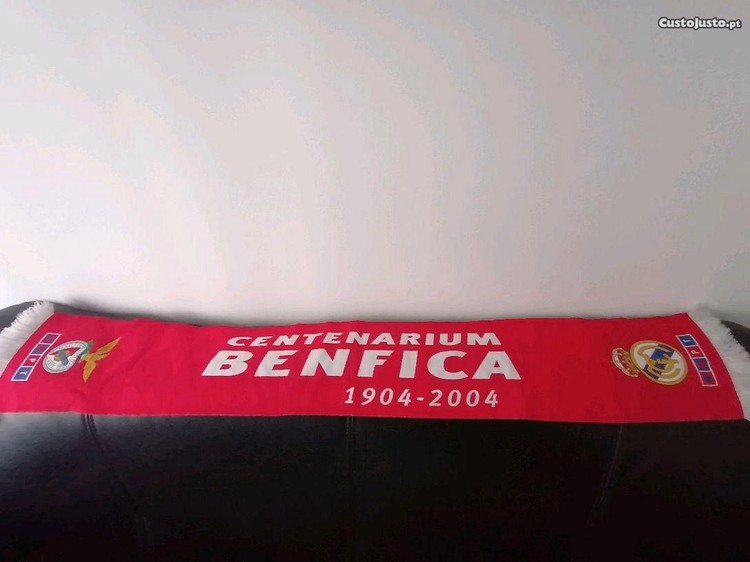Cachecol do clube de futebol Benfica Centenarium 1904-2004, jogo com o Real Madrid.