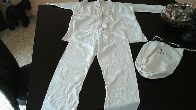 Fato de judo, ou karaté, leve e muito resistente tamanho L, com bolsa próprio do mesmo tecido para transporte.Em estado imaculado, tecido antigo já não se fabrica igual atualmente, sem rasgões ou descido, em estado impecável, não tenho cinto.
