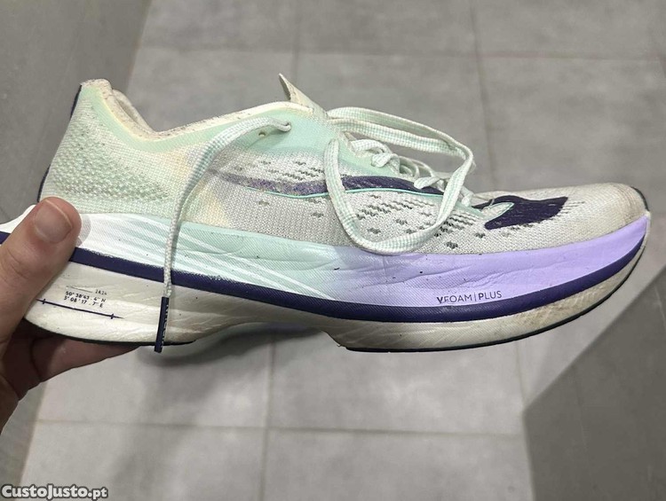 Sapatilhas de corrida praticamente novas, usadas apenas duas vezes. Com placa de carbono.
