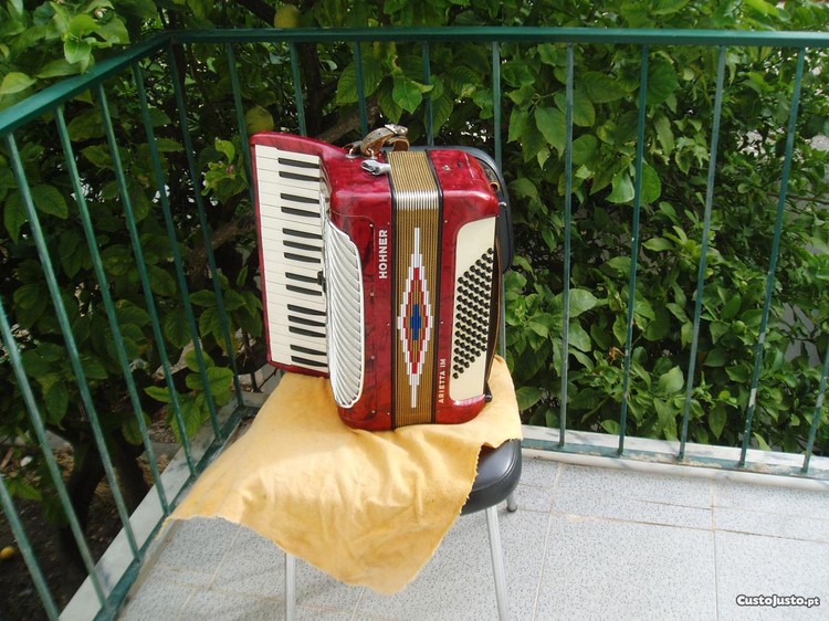 Hohner Arieta à 2 voz com 72 bxs leve para arruadas e tunas académicas em estado novo só aceito pagto cash contra entrega em mão em local a combinar zona de Lisboa ou arredores, preço fixo, aceito troca por 2ª voz de botões ou concertina hohner à 3ª voz