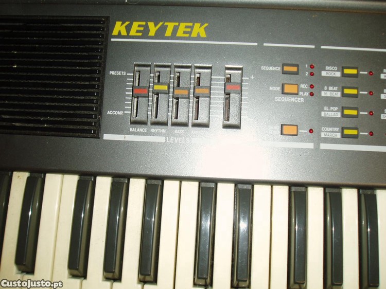 Eletrónico como novo, KEITEK, é portátil tem pernas de suporte cromadas desmontáveis, tem acompanhamentos e toca sons de vários instrumentos, 5 oitavas e tem ligação para midi